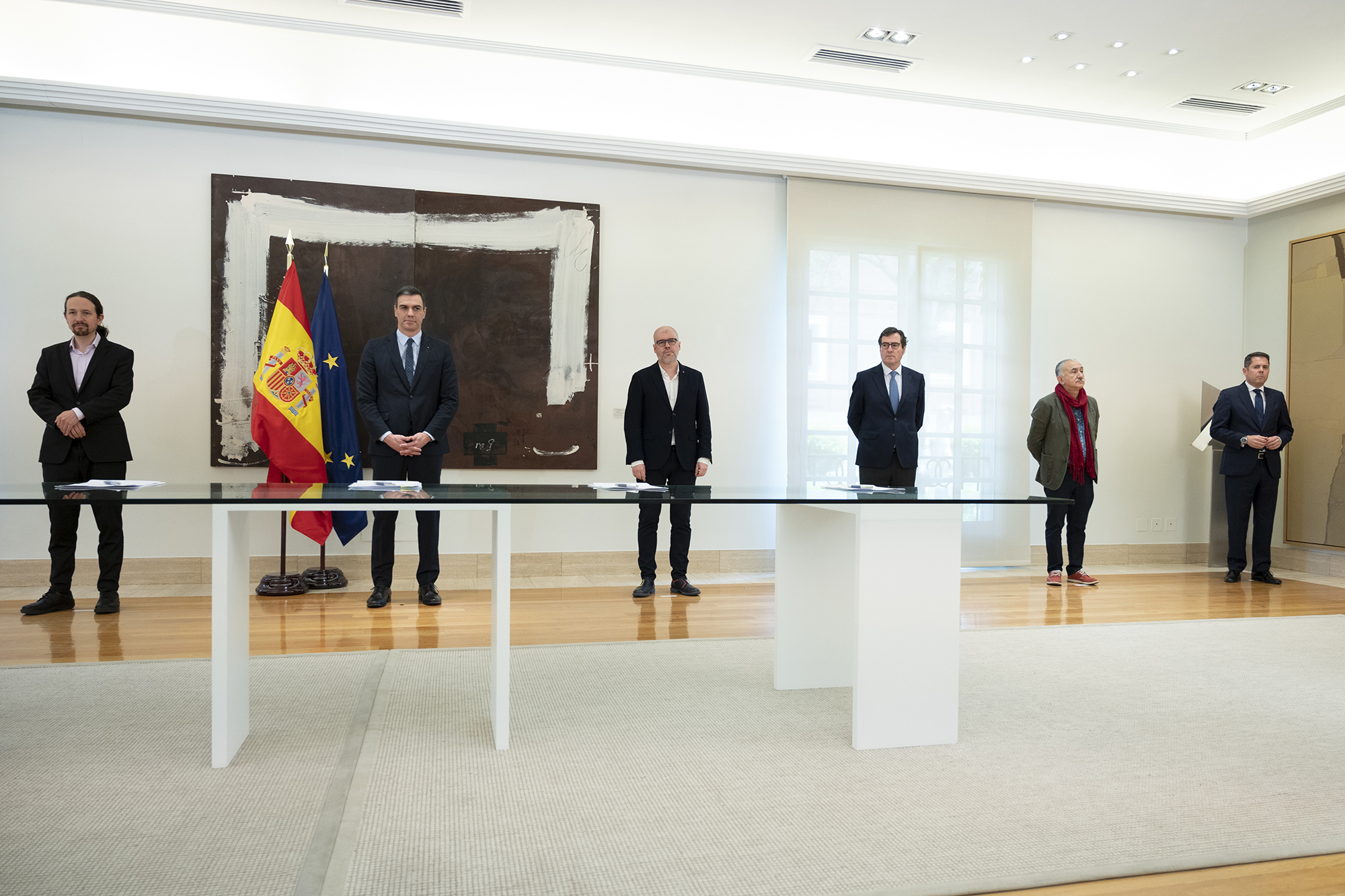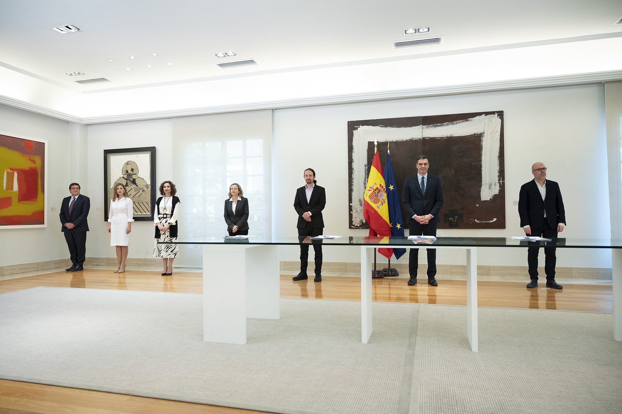 Al acto de la firma, han asistido, por parte del Gobierno, el vicepresidente y ministro de Derechos Sociales y Agenda 2030, Pablo Iglesias; la vicepresidenta y ministra de Asuntos Económicos y Transformación Digital, Nadia Calviño; la ministra de Hacienda y portavoz del Gobierno, María Jesús Montero; la ministra de Trabajo y Economía Social, Yolanda Díaz, y el ministro de Inclusión, Seguridad Social y Migraciones, José Luis Escrivá.