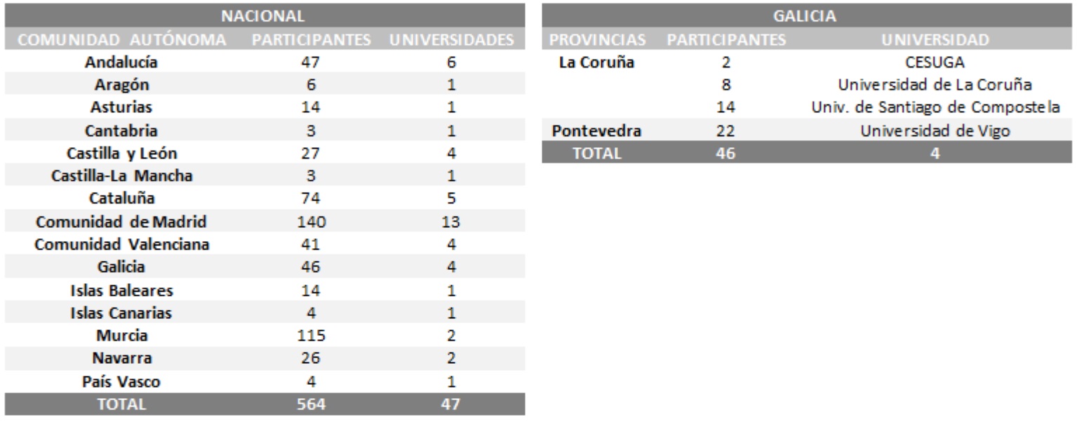 Galicia es la quinta comunidad autónoma con más representación en esta competición, después de la Comunidad de Madrid con 140 jóvenes, Murcia (115), Cataluña (74) y Andalucía (47). Las provincias gallegas que cuentan con participación en esta edición son La Coruña con 24 estudiantes y Pontevedra con 22 jóvenes.